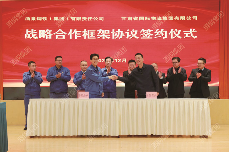 12月16日上午,甘肅國(guó)際物流集團(tuán)黨委書(shū)記、董事長(zhǎng)王月成一行來(lái)訪酒鋼。集團(tuán)公司黨委書(shū)記、董事長(zhǎng)陳得信與客人座談。甘肅國(guó)際物流集團(tuán)總經(jīng)理、黨委副書(shū)記李建軍,黨委常委、副總經(jīng)理劉軍勛;酒鋼集團(tuán)公司總經(jīng)理、黨委副書(shū)記程子建,黨委常委、副總經(jīng)理成東全參加座談。雙方企業(yè)簽署戰(zhàn)略合作框架協(xié)議。圖為簽約現(xiàn)場(chǎng)。